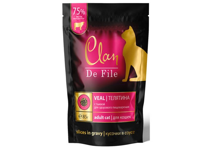 Clan DeFile паучи кусочки в соусе в составе которого 75% мясных ингредиентов в каждом кусочке. Без искусственных консервантов, усилителей вкуса и ароматизаторов. Широкая линейка в составе которой овощи, травы и ягоды. В составе высококачественные мясо и субпродукты отечественного производства, прошедшие тщательный контроль качества. Паучи Clan DeFile превосходно подходят в качестве основного питания и будут превосходным лакомством для самых привередливых хвостатых гурманов! СОСТАВ: мясо и мясопродукты (индейка 5%), креветки 4%, мясной бульон, минералы, ламинария семена льна. ПИЩЕВАЯ ЦЕННОСТЬ в 100 г: сырой протеин 8,0%, сырой жир 4,5%, сырая зола 2,0%, сырая клетчатка 0,2%, таурин – 0,2%, влажность 82%. ЭНЕРГЕТИЧЕСКАЯ ЦЕННОСТЬ: 85 ккал ВИТАМИНЫ И МИНЕРАЛЫ 1 кг продукта: витамин D3 200 МЕ, витамин E 22 мг, витамин С 40 мг, витамин В1 12 мг, витамин В2 6 мг, витамин В6 2 мг, витамин В12 75 мкг, ниацинамид 15 мг, кальция д-пантотенат 9 мг, фолиевая кислота 0,35 мг, биотин 300 мкг, холина хлорид 700 мг, цинк 25 мг, марганец 1,4 мг, йод 0,75 мг, омега -3 -0,3%, медь 1 мг.
