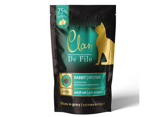 CLAN De File пауч 85гр в соусе Кролик со шпинатом д/кошек