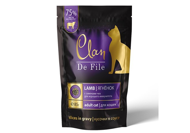 CLAN De File пауч 85гр в соусе Ягненок с семенами чиа д/кошек