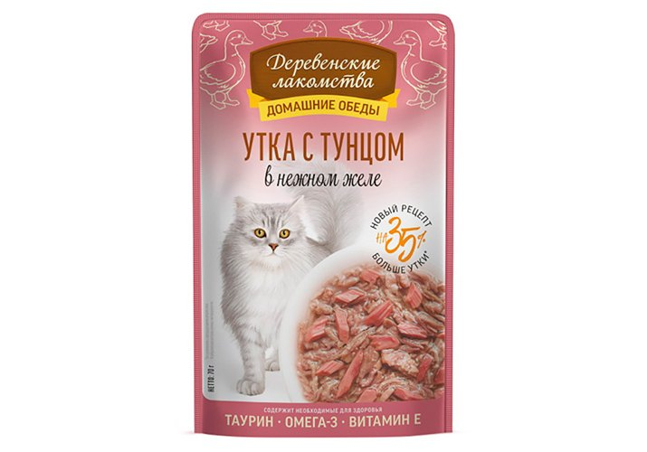 Деревенские лакомства конс. д/кошек «Утка с тунцом в нежном желе», пауч 70г