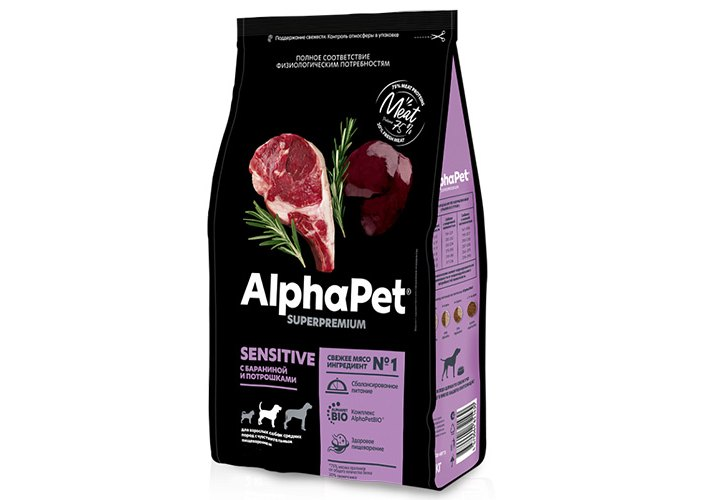 КОРМ ALPHAPET S/PR-M Д/ВЗР.СОБ.СР.ПОР.Ч/ПИЩ.(БАР/ПОТР) 12кг