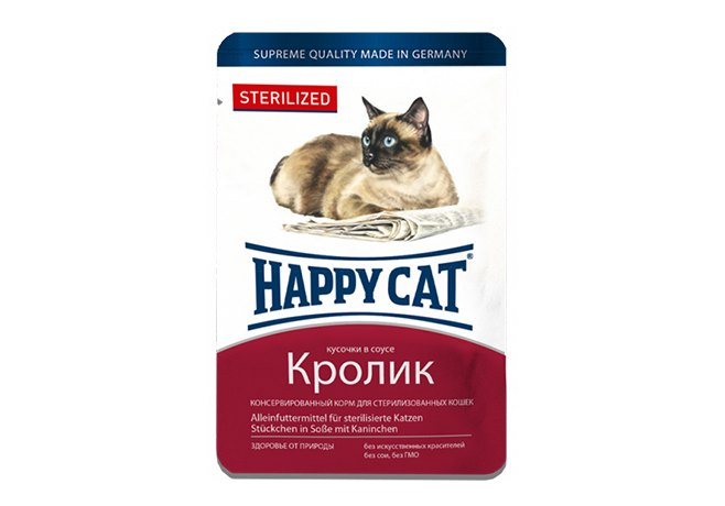 Паучи Хэппи Кэт для стерилизованных кошек /кролик кусочки/ в соусе (Россия) - 0,085 кг