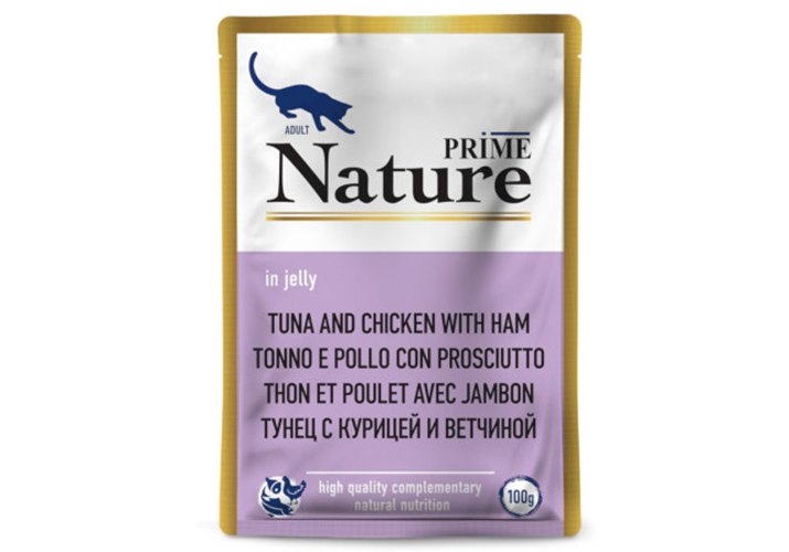 PRIME NATURE пауч 100гр в желе Тунец с курицей и ветчиной д/кошек