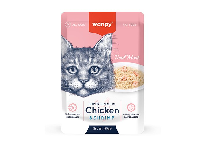 Wanpy Cat Пауч для кошек из курицы и креветок 85 г